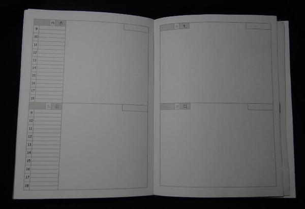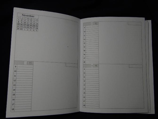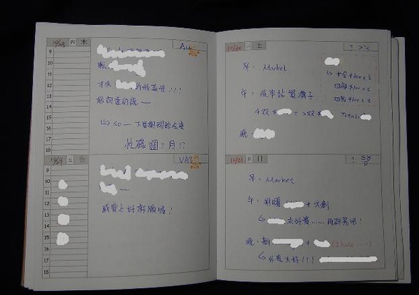 1. 左邊9~18的格子專門紀錄上班時間的事件,下班後自由時間所發生的事件或是特殊記事、心得等就自由的寫在右邊空白區