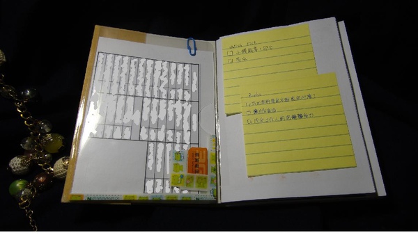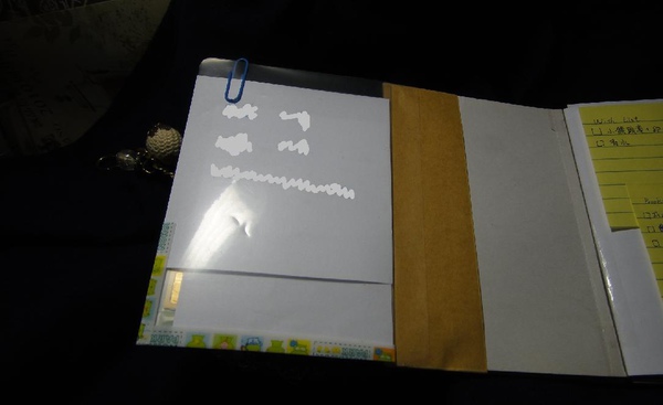 左邊的資料放置袋是用透明夾做出來,裡面放一些工作上常用到的資料,外加一個臨時會用到的手機sim卡